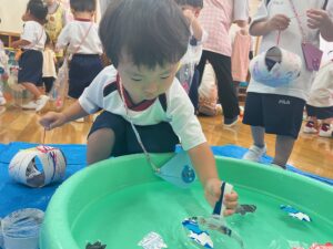 ヨーヨーつりや金魚すくい、たこやきビンゴ、わにわにパニックで楽しみました!!