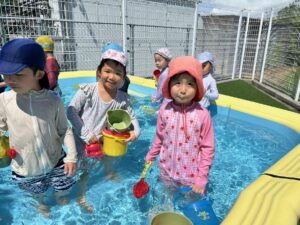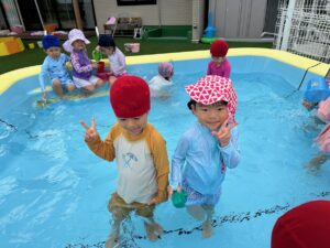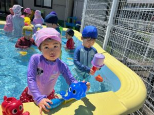 プールも週に2回、各クラスが順番に楽しんでいます(*^O^*)
