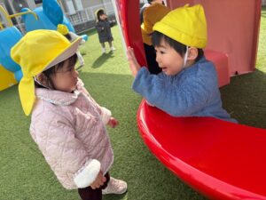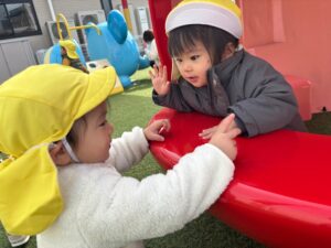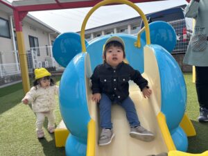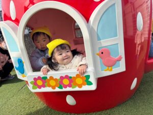 お外でもアニマルランドですべり台やいちごハウスで仲良く遊んでいます♬