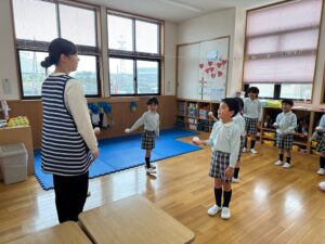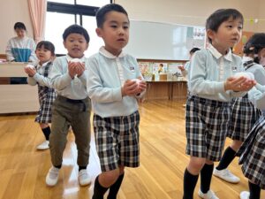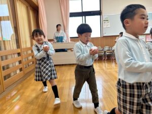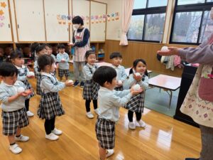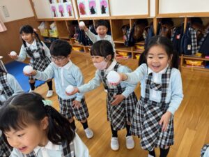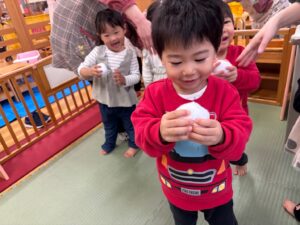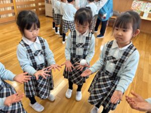 片手で運んだり、「ゆき」の曲に合わせて隣にどうぞ~をしました