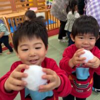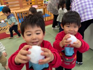 そーっと優しく雪玉を持って歩いたり、体のいろいろなところにくっつけて楽しみました♪