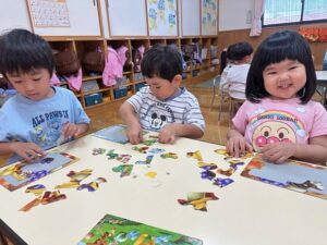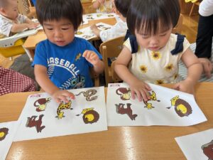 こあら組さんは数字やひらがなの書き、パズルや手先を使ってひも通しをして楽しく学んでいます!
