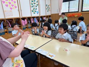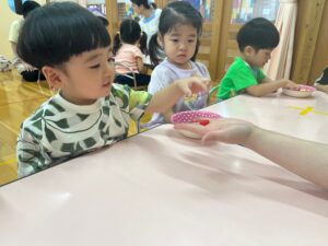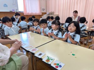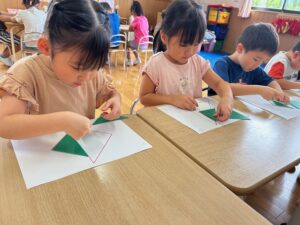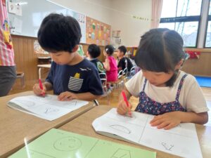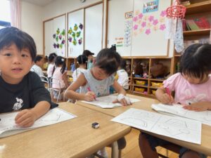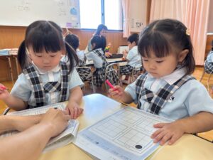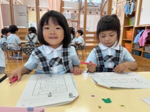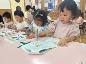 もも組さんはお絵描きや色、数、ひらがな、図形など、たくさん学んでいます!