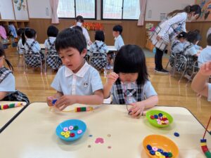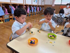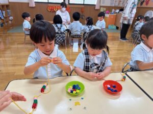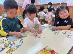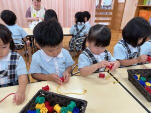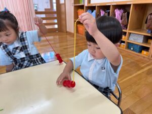 こあら組さんは数字やひらがなの書き、パズルや手先を使ってひも通しをして楽しく学んでいます!