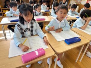 文章を書いて、みんなの前で読みました!上手に読めたかな?