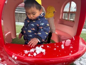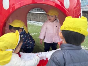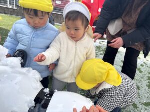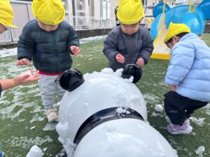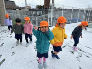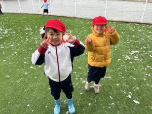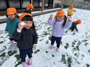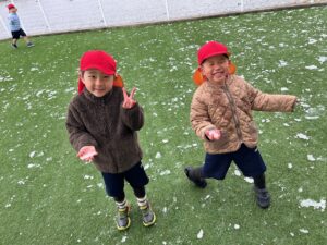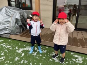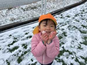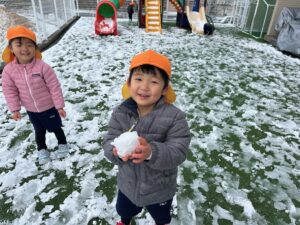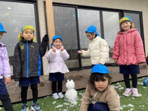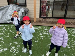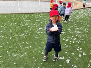 朝からみんな「ゆきだ~!!」と寒さにも負けずに元気いっぱいに登園して来てくれました(^^)/
