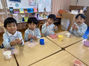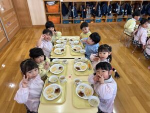 クリスマスお楽しみお給食もとっても美味しいようでにこにこ食べていました♡