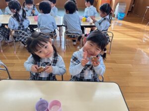 おやつはドーナツにカスタードが入っていておいしかったですね♪