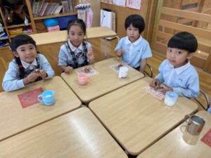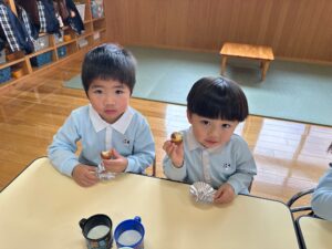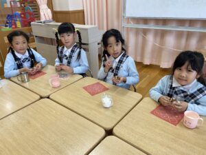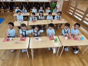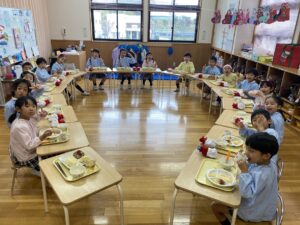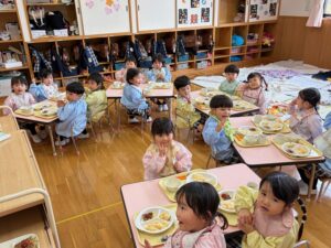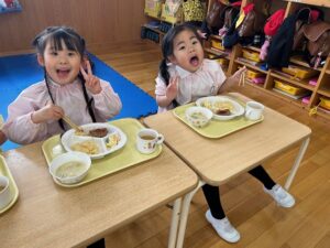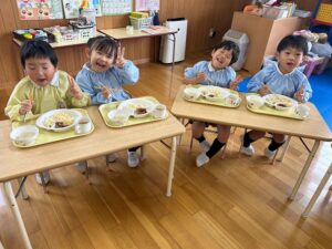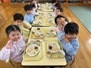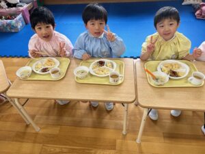 クリスマスお楽しみお給食もとっても美味しいようでにこにこ食べていました♡