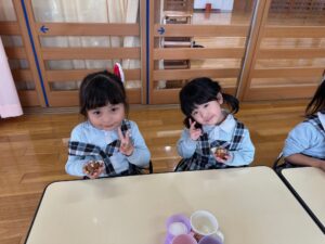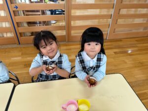 おやつはドーナツにカスタードが入っていておいしかったですね♪