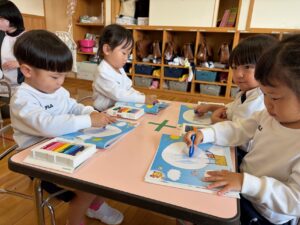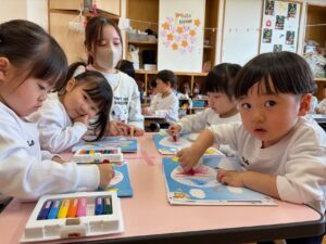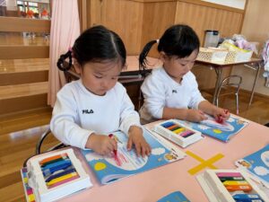 言われたカラーを持って色塗りです!真剣な姿もかわいいですね♡